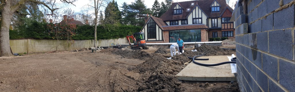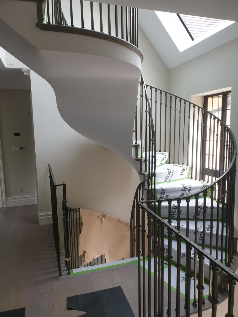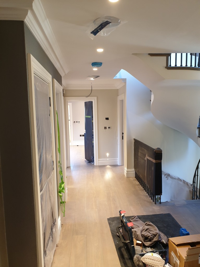 ASCOT-full landscaping with “French Drain System “and installing granite tiles on pavement ,stairs and terraces with electric under floor heating. Internally :painting and decorating ,wallpaper in all rooms, new wooden flooring, installing new bathrooms and showers with floor and wall tiles. Installing spiral staircase with cast iron spindles and handrail.