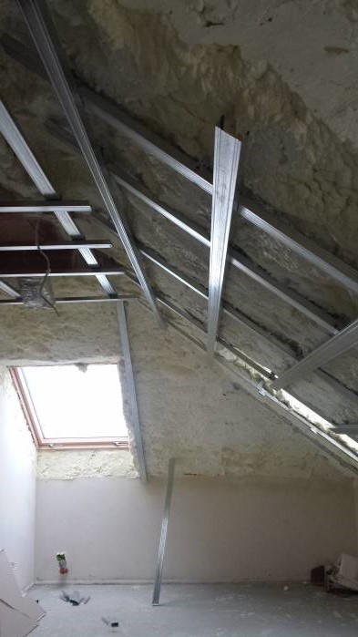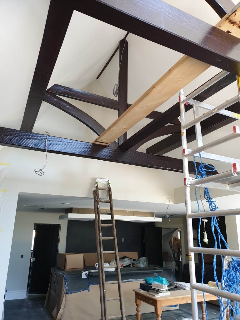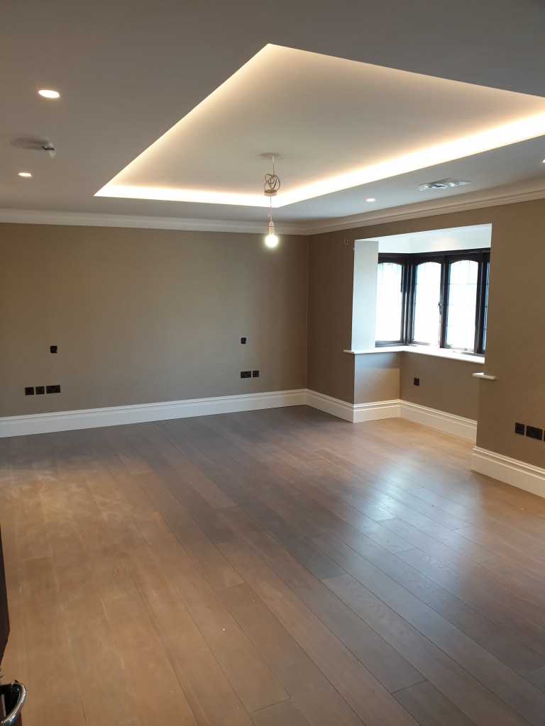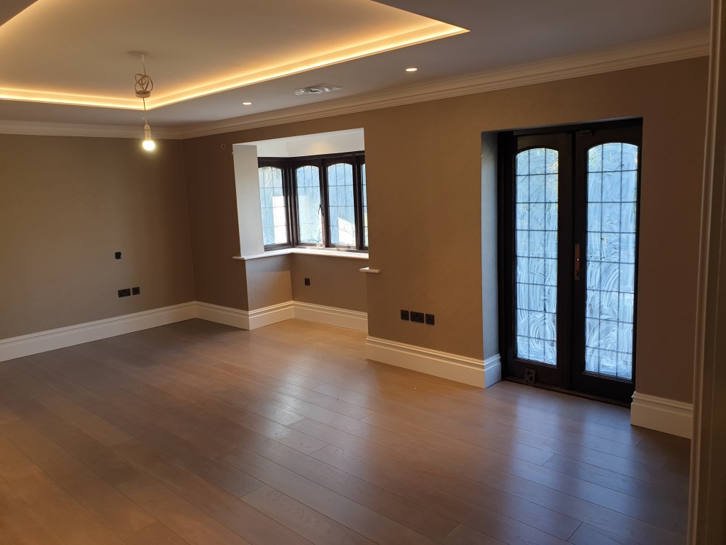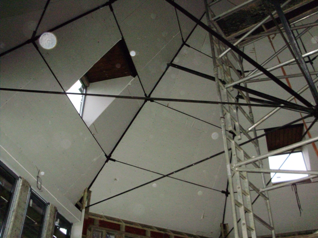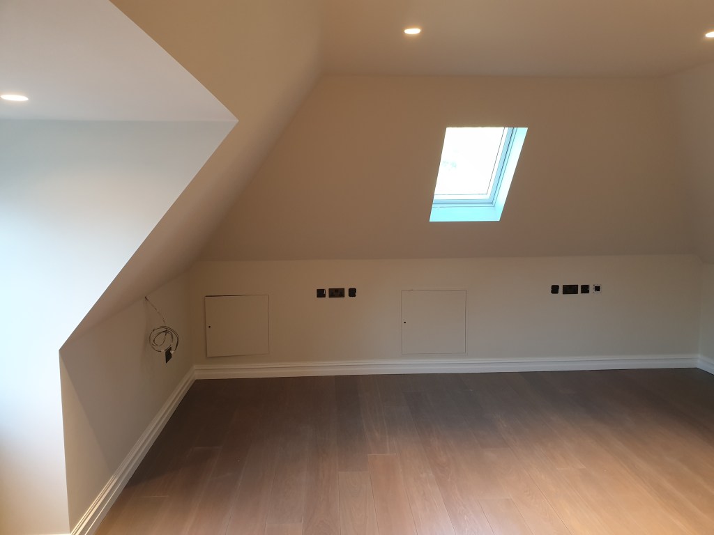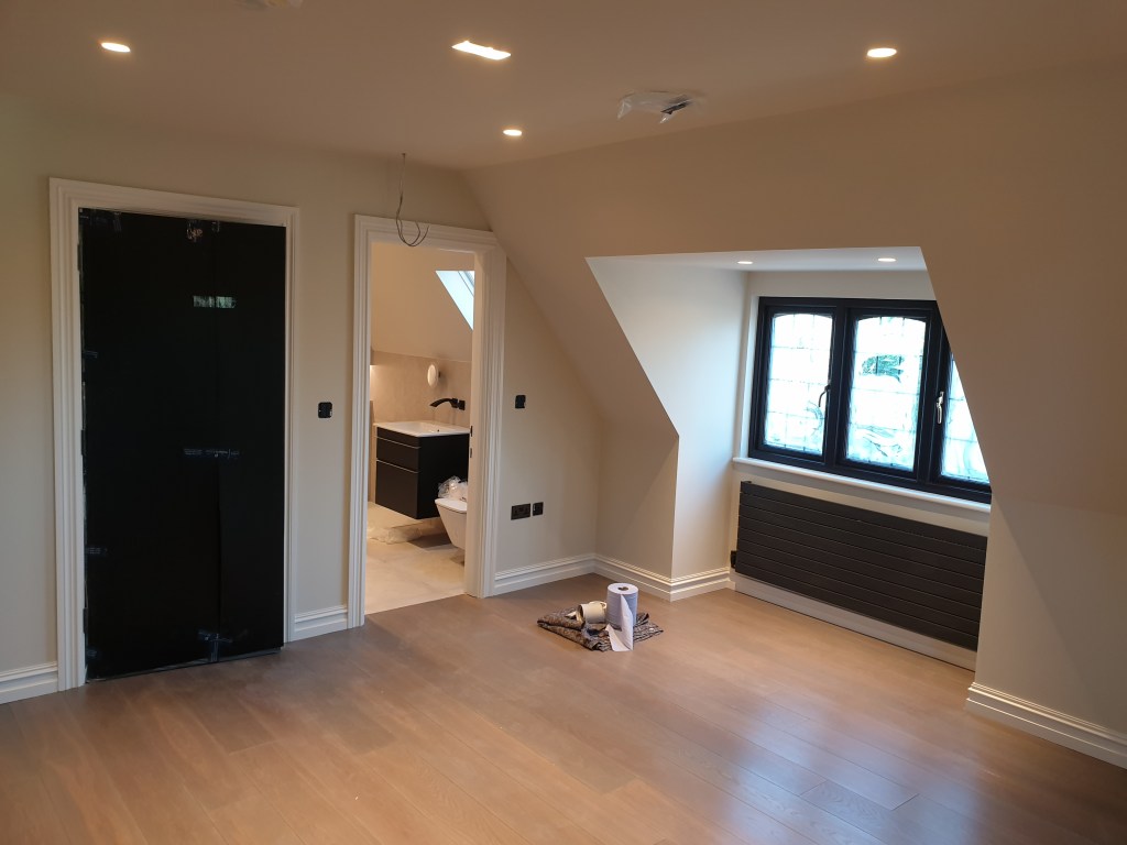 4 bedroom detached house- roof spray insulation, metal suspended ceiling, plasterboard, decking, landscaping