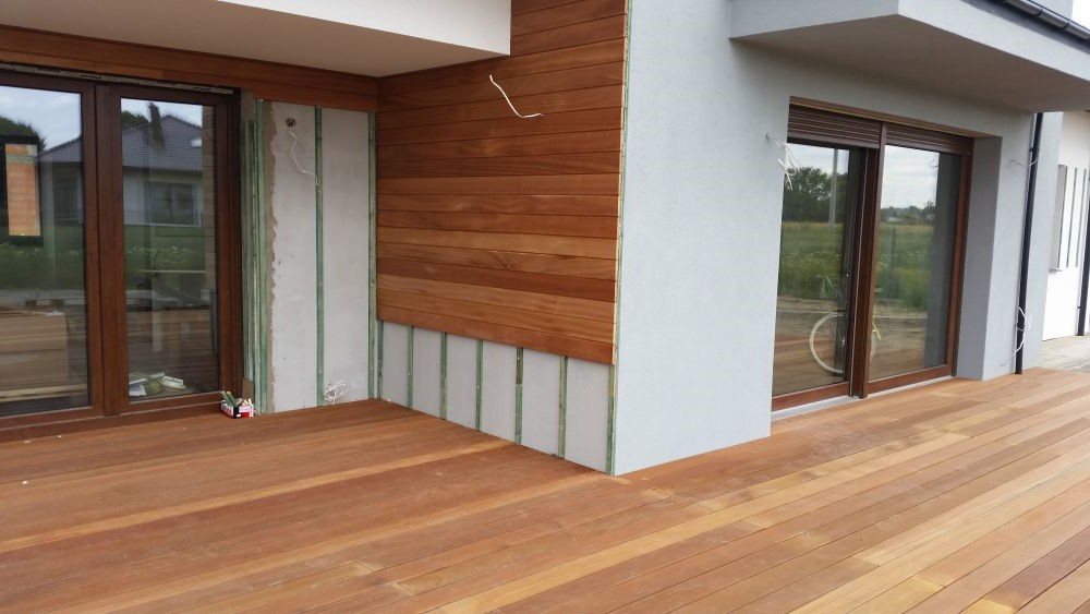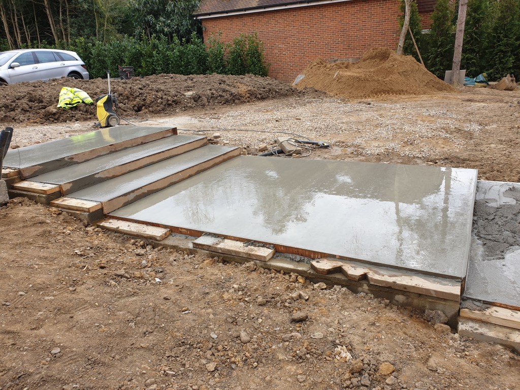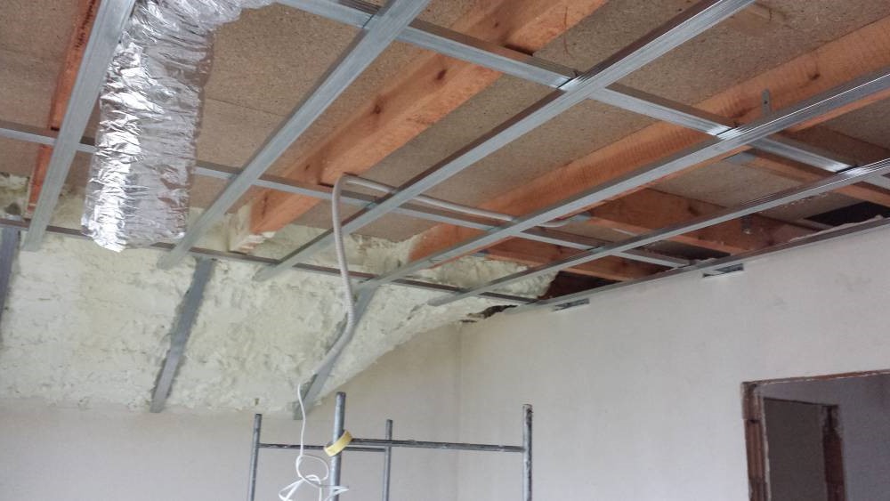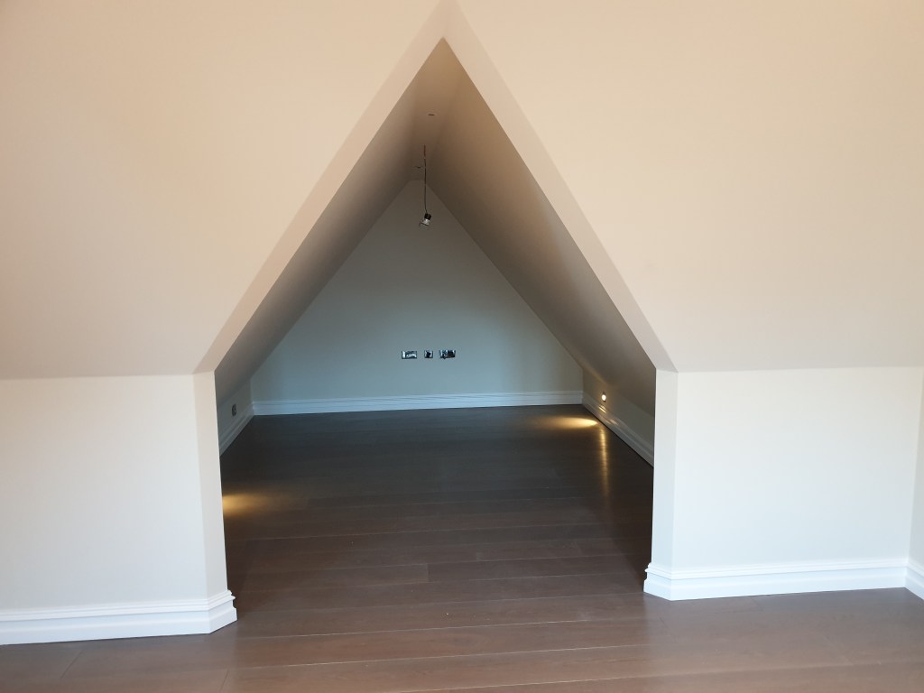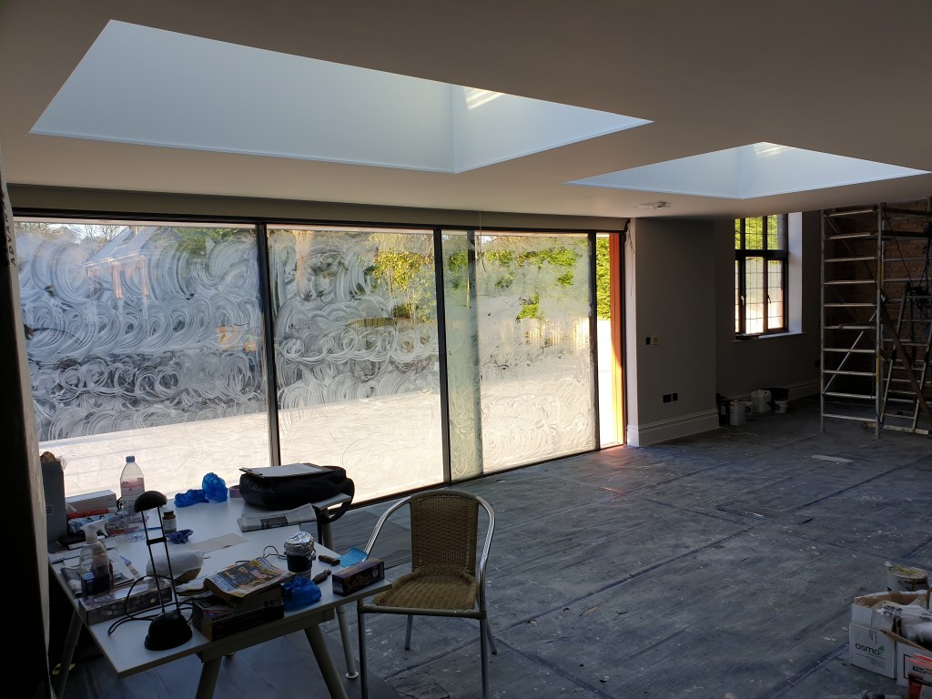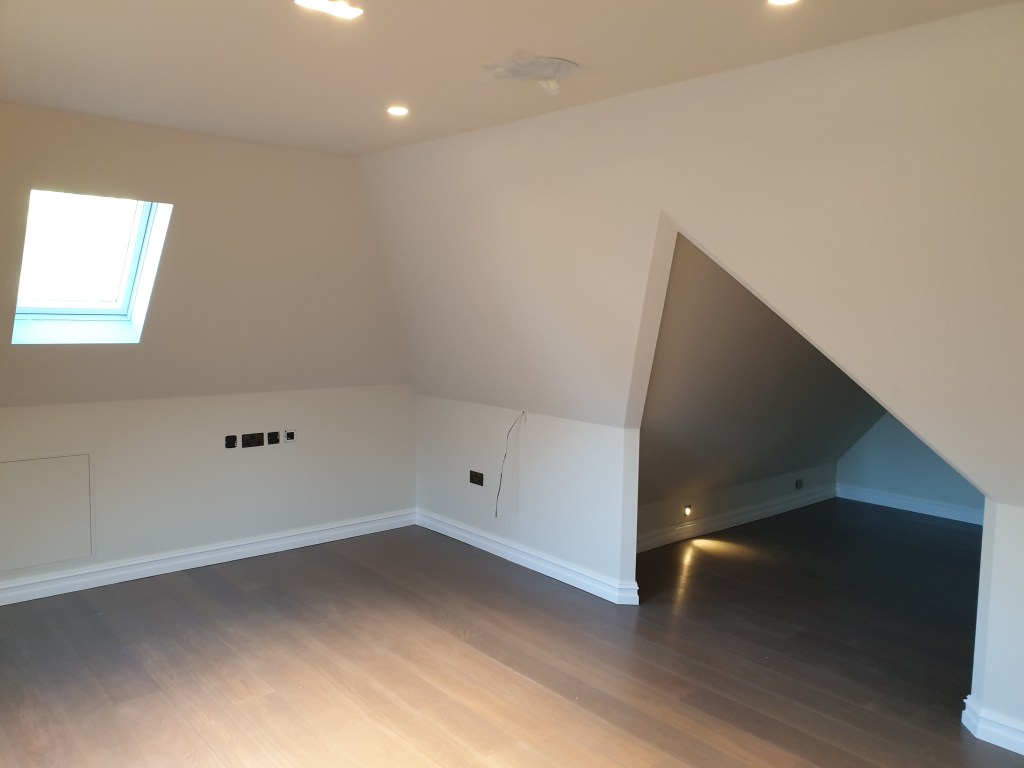 4 bedroom detached house- roof spray insulation, metal suspended ceiling, plasterboard, decking, landscaping